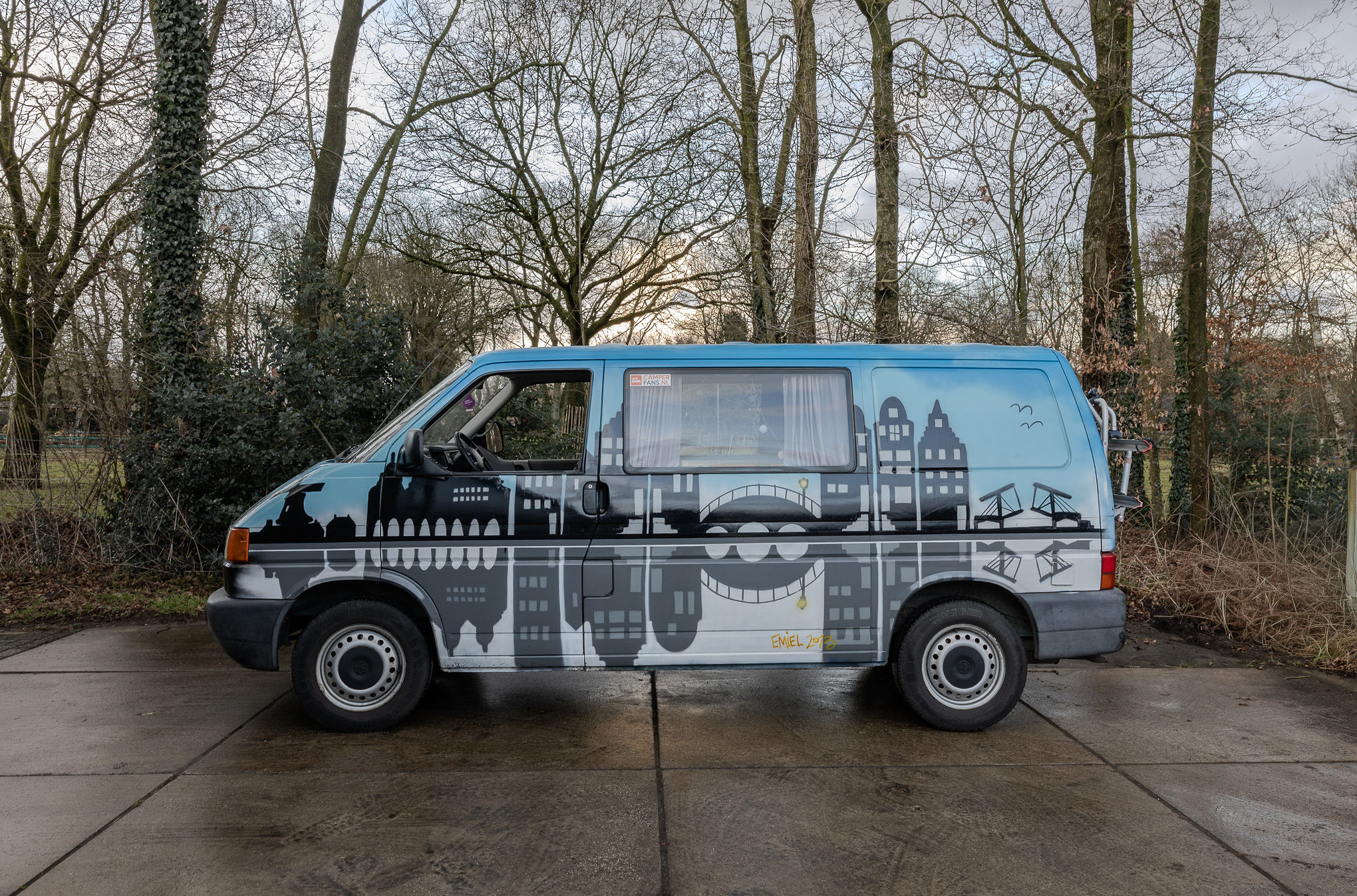 Deze 2 persoons camper is uniek beschilderd met het thema Amsterdam. De Volkswagen Transporter T4 staat bekend om zijn betrouwbaarheid en gebruiksgemak. Door zijn compacte afmetingen is hij wendbaarder dan een grote camper en kun je op meer plaatsen komen.
